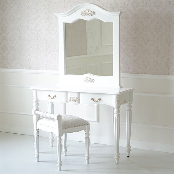 【送料無料】ドレッサー スツールセット アンティーク トリノサヴォイア マホガニー エレガント ホワイト 三面鏡 ドレッサー
