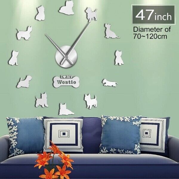 ウエスティ ウエストハイランドホワイトテリアのかわいさが壁一面に広がる、壁掛け時計です。細部まで忠実に再現されたデザインは、犬好きの方々に大変好評を頂いております。白いふわふわの毛並みや愛らしい表情が、リビングや玄関などのお部屋にほっこりとした温かみをプラスしてくれます。