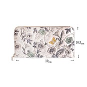 ◇サイズ:約10..5×19×2..4cm 重量:180g ◇牛革(文庫革) ◇日本製 ◇開閉:ファスナー 小銭入れ:ファスナー式1 札入れ2、内オープンポケット4、カードポケット12 ◇蝶が舞う、楽園のようなお庭を表現しています。蝶には本金箔を使い、格調高く仕上げています。コの字型のファスナーが開け閉めしやすい、スタンダードな長財布。扇マチでしっかり開き、大容量でありながら閉じればすっきり見えます。小銭入れのファスナー引き手も使いやすい大きさを考えて開発した、オリジナルです。【浅草文庫】播州姫路の真っ白になめした牛革に彩色豊かな柄をあしらった文庫革。型友禅と手描き友禅の手法を駆使して、浅草橋の工房にて友禅職人たちが 丹精込めてひとつひとつ手作りしています。色を重ねていくことで表情のある鮮やかな濃淡を生み出し 図柄に合わせて立体的に型押しを行うことによって出来た陰影が さらに奥深い色を生み出しています。職人たちの繊細な技の冴えを ご堪能下さい。