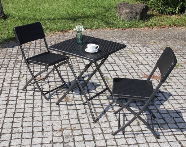 細身のラインでシンプルなデザインのテーブル&チェア2脚のガーデン3点セットです。ワントーンで統一され取り入れやすいカラーリング。