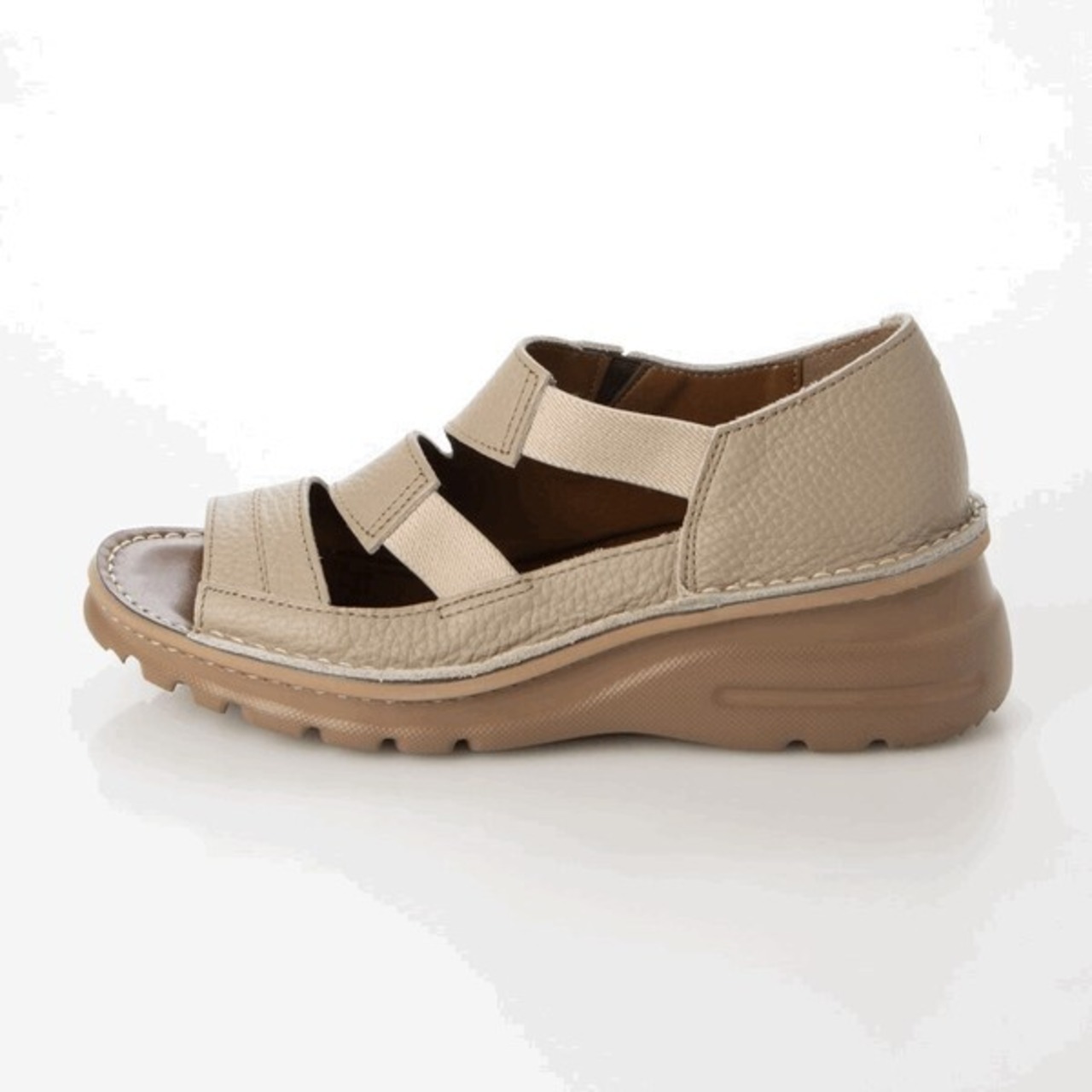 空気を履いた感覚のASW(air sence walk)オールを採用したコンフォートサンダル。 軽量で軽やかな履き心地で足取りも軽く、気軽にはいていただけるコンフォートサンダルです。 しっかりした頑丈なシュリンクレザーを採用し、足に馴染む柔らかい革を使用し履けば履くほどに馴染むレザープロダクトになります。 シンプルなデザインはデイリーユースにおすすめです。 アッパーにゴムをあしらっておりますので足にしっかりフィットし足甲が高い方にもおすすめです。 かかとつきでしっかりホールドしてくれますので安心して歩行いただけます。