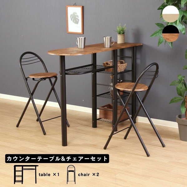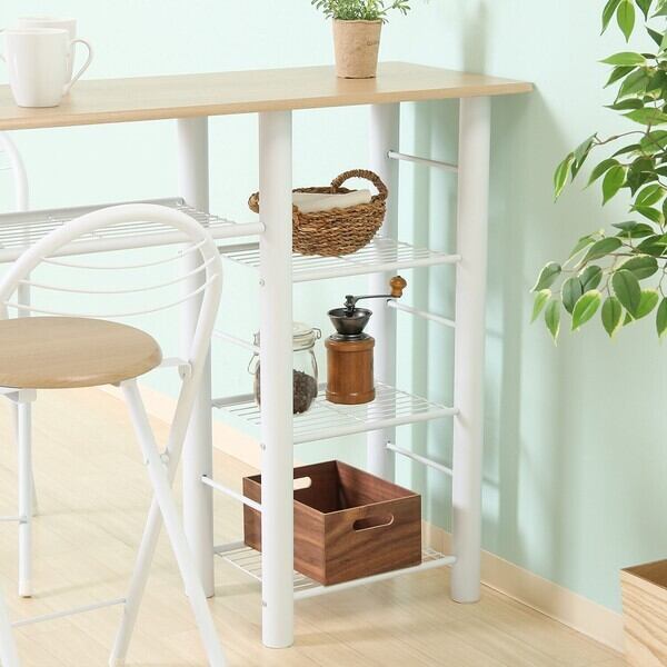 小さなスペースに収まるハイタイプのダイニングセット。キッチンと組み合わせてバーテーブルにも◎